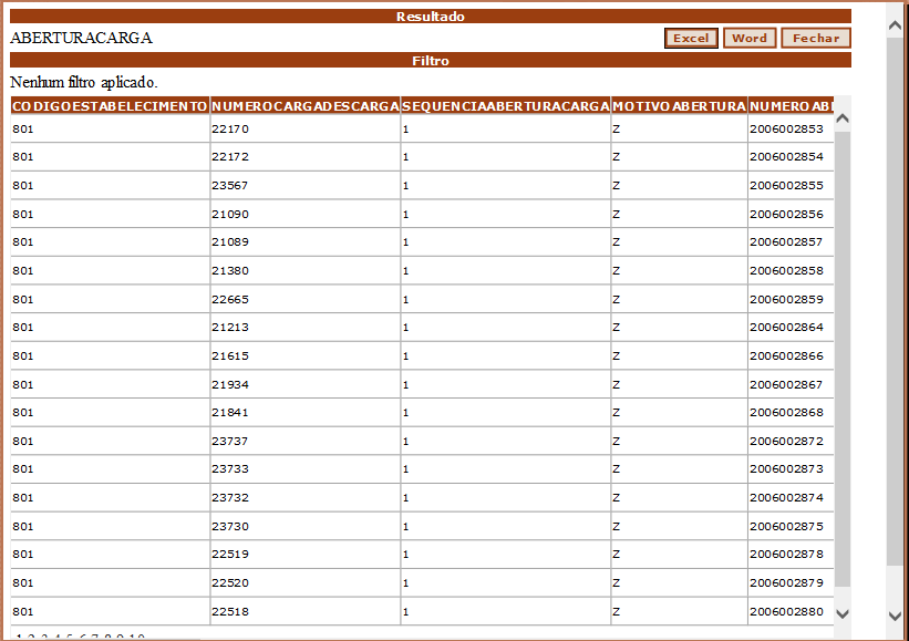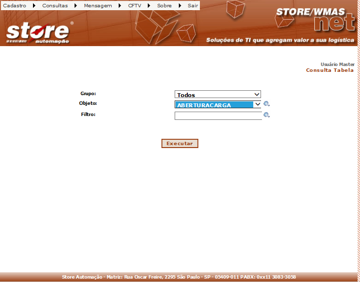A tela de Tabelas, permite visualizar os dados das Tabelas desejadas.